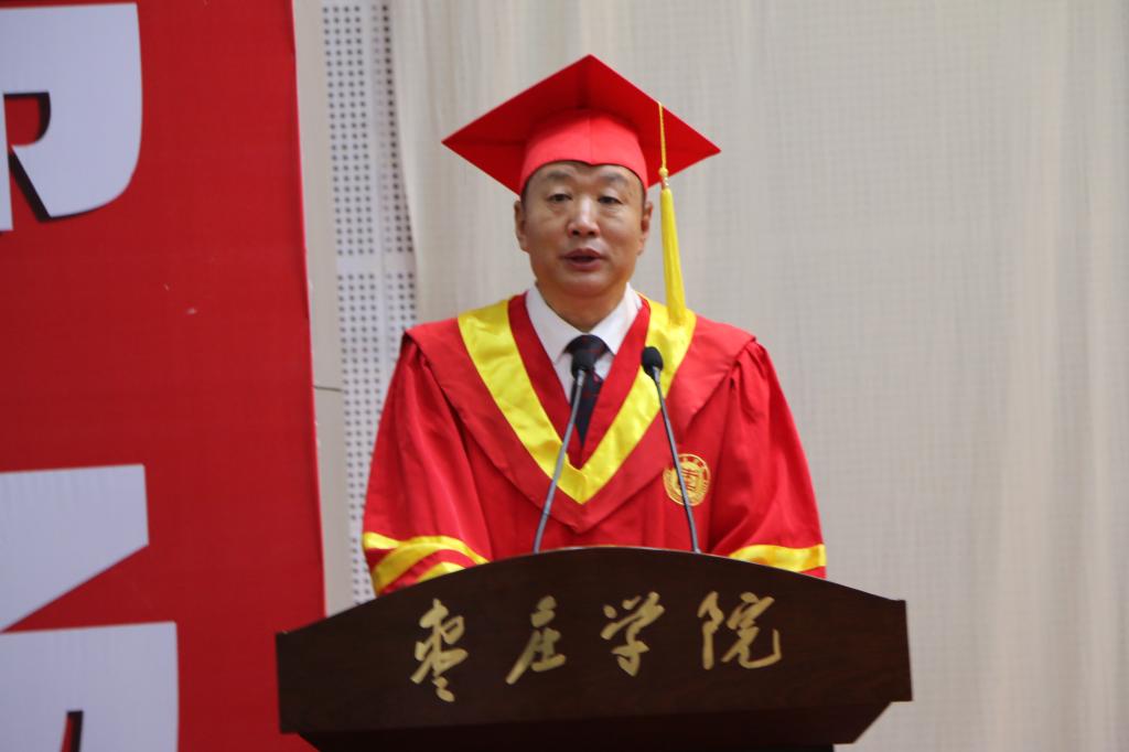 李东做了题为《担当时代使命 绽放青春梦想 做堪当民族复兴大任的时代新人》的毕业典礼致辞,代表学校对同学们圆满完成学业、开启人生新的篇章表示祝贺,向一直以来辛勤付出、无私奉献、哺育学生成长成才的师长表达感谢和敬意。李东回顾了过去四年中,学校在教育教学质量提升、学科建设和科研能力建设、高层次人才队伍建设、新校区建设等方面取得的成绩,列举了2019届毕业生中值得大家学习的榜样,激励毕业生将家国情怀铭记于心,做一个坚定自信、追求卓越的人;将责任担当铭记于心,做一个胸怀理想、不懈奋斗的人;将志强智达铭记于心,做一个终身学习、勇于创新的人;将兼爱尚贤铭记于心,做一个厚德养正、达观明理的人。