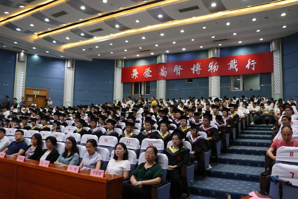 6月27日上午,我校在综合楼报告厅举行2019届毕业典礼暨学士学位授予仪式。校领导曹胜强、李东、曾宪明、明清河、李目海、韩素玲、李丽清出席典礼并在主席台就座,各学院党政领导、有关部门负责人、教师代表、毕业生代表及在校生代表共同参加。校党委副书记曾宪明主持典礼。
