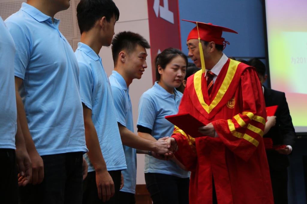 心理与教育科学学院安洪涛老师作为教师代表发言,勉励同学们把拼搏当作习惯,把理性当作常态;把学习当作习惯,把勤勉当作常态;把合作当作习惯,把诚信当作常态,希望同学们带着在母校汲取的精神和能量,“仗剑”走向四海八荒,奏出人生的欢乐颂,谱写壮丽的中国梦。