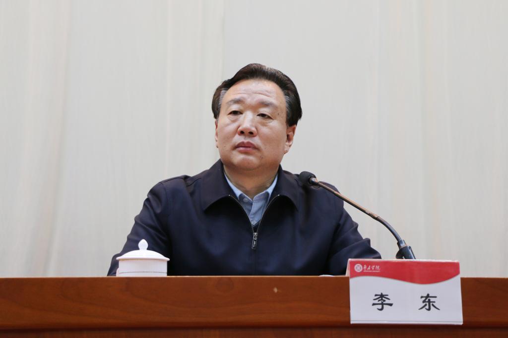李东对培训班的目标和任务做出说明。他指出,今年的关键词是抓落实。正月初七省委省政府召开“全省‘担当作为、狠抓落实’工作动员大会”,正月初九我校与枣庄市委、市政府联合举办了第二届博士论坛。今天,根据校党委工作安排,在正式开学前把全体副科级以上干部召集起来,举办2019年寒假干部培训班,随后召集教工代表召开三届三次“双代会”,目的就是通过集体学习、分组研讨等,对年度工作进行细谋划、早部署、重落实,为全面狠抓落实开好局,起好步。希望大家在思想上高度重视,充分把握学习机会,严格遵守培训纪律,集中精力听讲,认认真真学习,立足工作实际深入思考,做好结合文章。