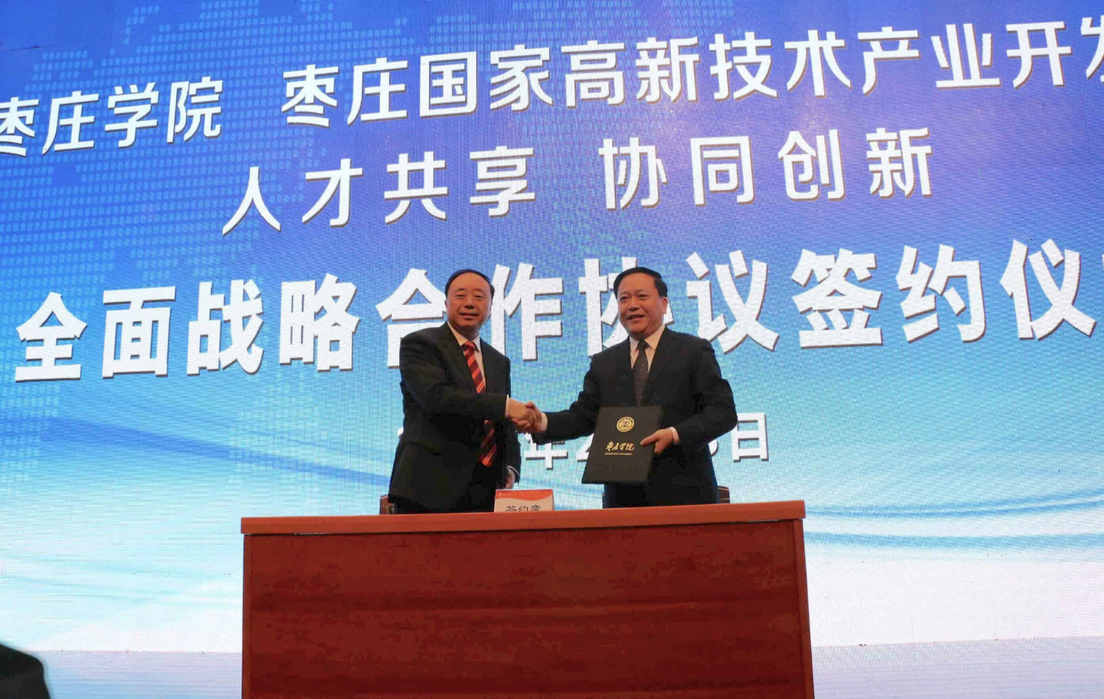 开幕式现场,曹胜强与王广部分别代表304am永利集团官网与枣庄国家高新技术产业开发区签订《人才共享、协同创新合作协议》;明清河代表304am永利集团官网与引进人才代表签约。