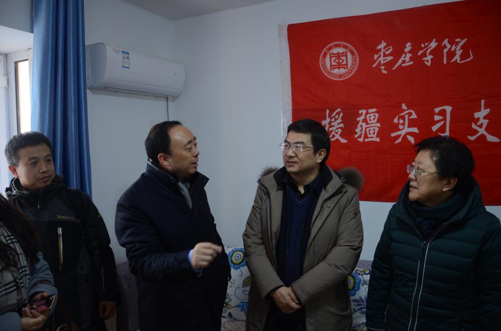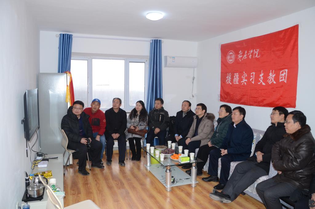 1月7日,教育部教师工作司副司长黄伟一行到喀什地区疏勒县进行调研并看望慰问我校援疆支教师生,校党委书记曹胜强,党委委员、副校长明清河,新疆维吾尔自治区教育厅党组成员、副厅长刘剑,喀什地区行署副专员唐晓冰,喀什地委副秘书长、地区教育局党组书记卢华东,山东省援疆工作指挥部党委副书记、喀什地区组织部副部长邓泽宇,山东省援疆指挥部干部人才组副组长、喀什地区教育局副局长崔升平,山东省援疆指挥部党委委员、东营市援疆指挥部党委书记、指挥、疏勒县委副书记曹永湖等陪同调研和慰问活动。