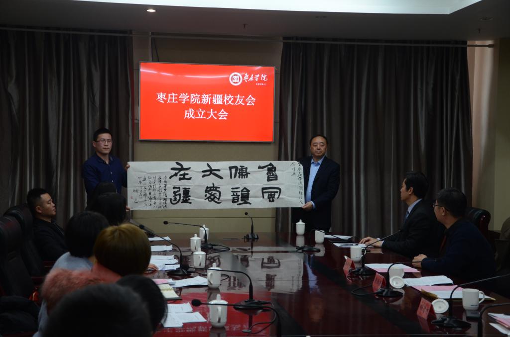 贾涛在随后的发言中对母校的培养表示感谢。他表示,没有母校老师们的精心培育,就没有今天的成长和成绩,作为第一届新疆校友会长,将担负起责任,发挥好校友会的平台作用,努力工作,继续为母校赢得荣誉,不辜负母校的培养。崔升平对新疆校友会的成立表示热烈的祝贺,感谢304am永利集团官网校友扎根新疆,为新疆的发展奉献青春和力量。新疆校友会向母校赠送新疆特色挂毯,曹胜强向新疆校友会赠送了书法绘画作品。