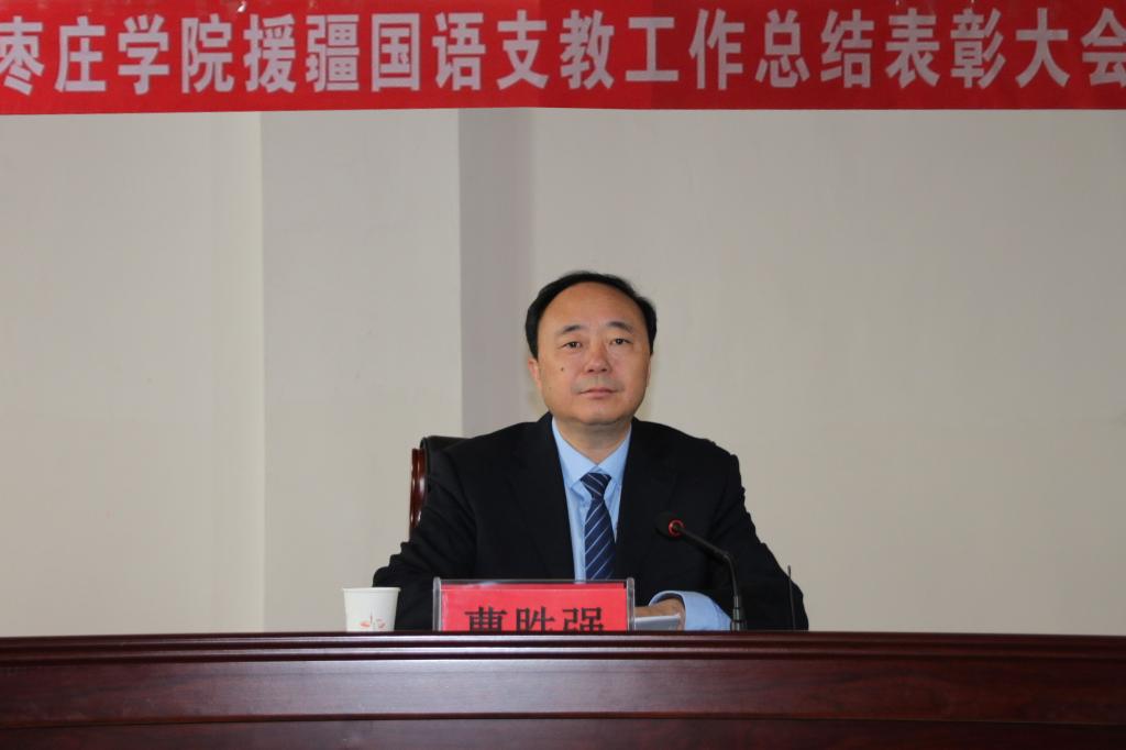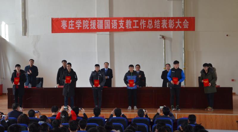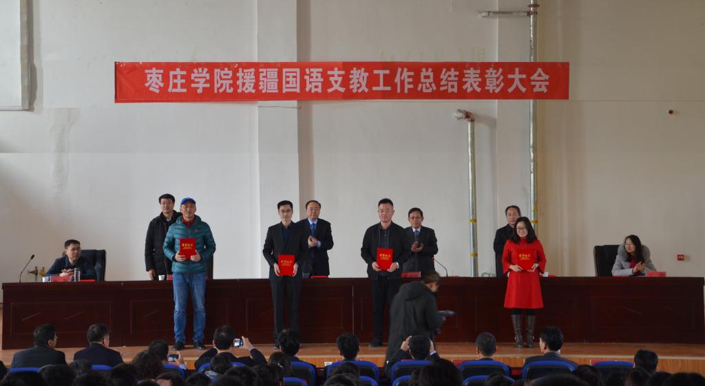 1月7日,304am永利集团官网援疆国语支教工作总结表彰大会在疏勒县东营第二希望小学会议室隆重举行。校党委书记曹胜强,党委委员、副校长明清河,山东省援疆工作指挥部党委副书记、喀什地委组织部副部长邓泽宇,喀什地区教育局师资培训管理中心副主任巴哈尔·古力,东营市援疆工作指挥部党委书记、指挥、疏勒县委副书记曹永湖,东营市援疆工作指挥部副指挥、疏勒县委常委、副县长杨凯,疏勒县教育局双语教学办公室主任王润,304am永利集团官网相关部门负责人和部分二级学院党总支书记、院长,各受援学校领导和援疆支教团全体师生参加会议,大会由明清河主持。