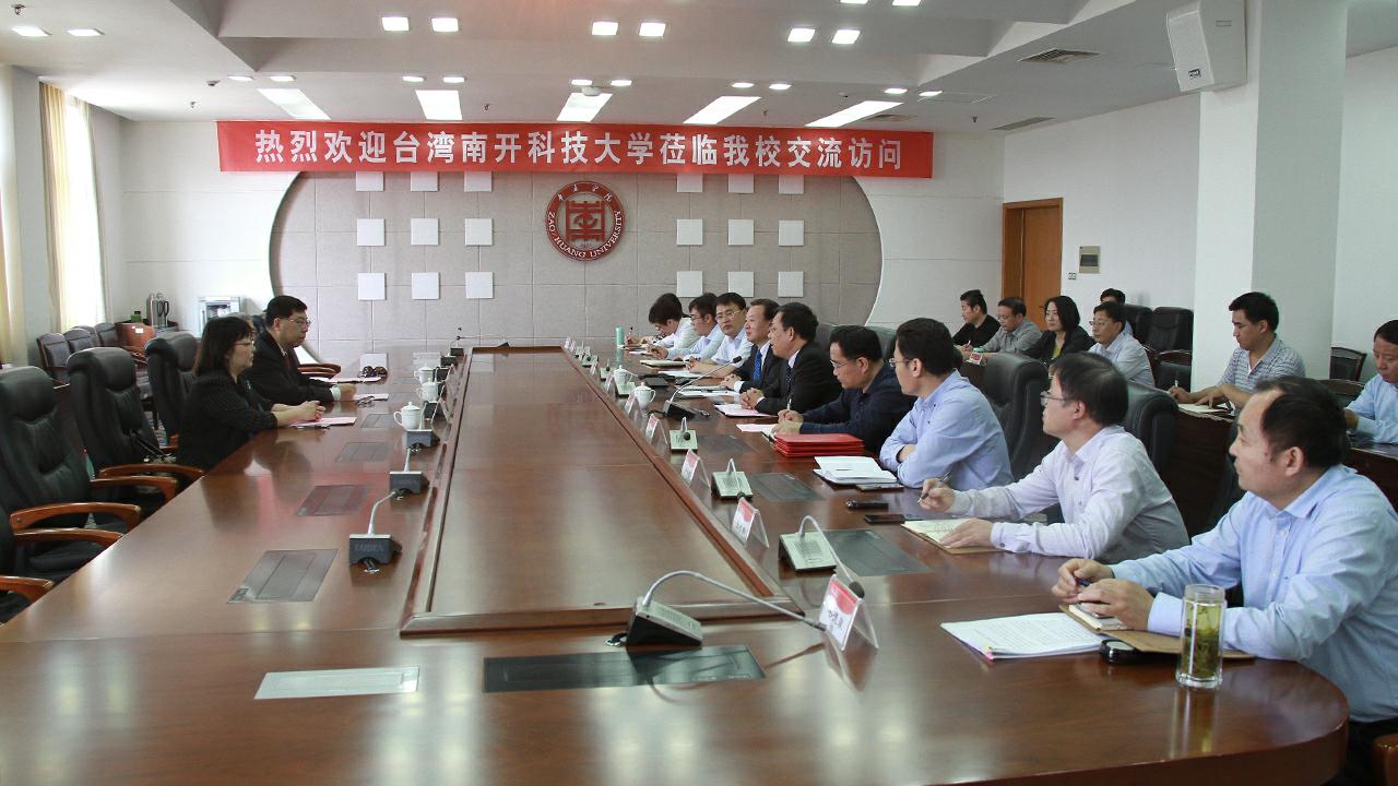 5月14日上午,台湾南开科技大学副校长许聪鑫博士一行3人来我校访问交流。校党委书记曹胜强会见了许聪鑫一行。会见结束后,两校就老年福祉科技与服务管理工作在综合楼三楼会议室进行座谈,校党委副书记、校长李东出席座谈会,副校长明清河主持座谈。相关部门和学院负责人参加座谈。