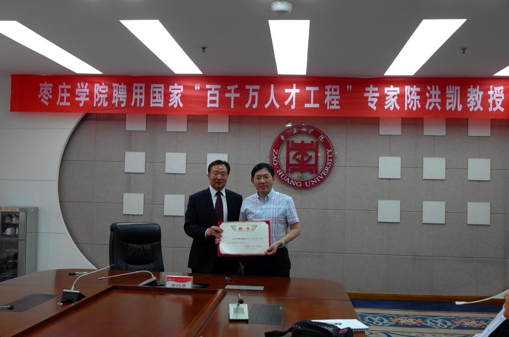 曹胜强表示,在我校深入学习贯彻习近平新时代中国特色社会主义思想和党的十九大会议精神,全面贯彻落实山东省委省政府《关于做好人才支撑新旧动能转换工作的意见》之际,陈洪凯教授全职加盟我校,是我校继全职引进国家级人才高炬教授之后的又一重大举措,对全面落实我校“十三五”规划和教育综合改革方案,深入推进高水平应用型大学建设和硕士学位授予单位立项建设等工作必将起到有力促进作用。