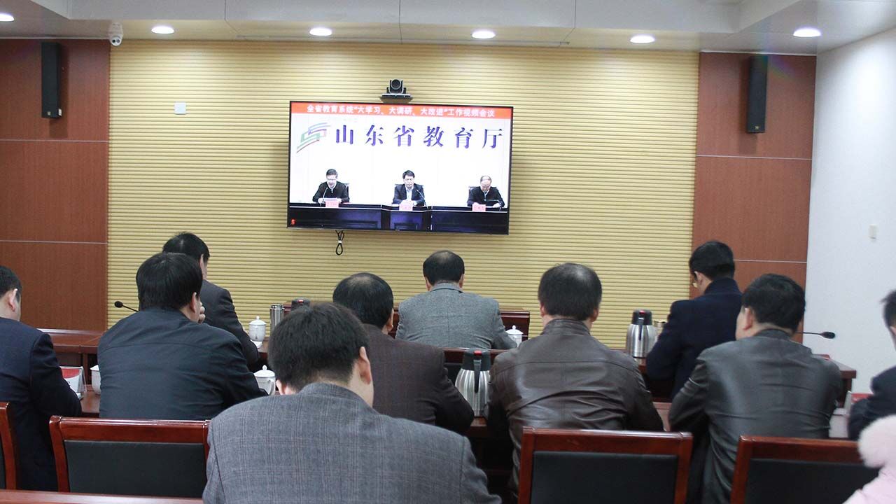 3月19日下午,根据省委教育工委统一安排,我校组织枣庄高校在综合楼七楼视频会议室集中收看了全省教育系统“大学习、大调研、大改进”工作视频会议。我校党委书记曹胜强、枣庄职业学院党委书记战振强、枣庄科技职业学院党委书记侯同运出席会议,三校组织部、宣传部等部门负责人参与收看。