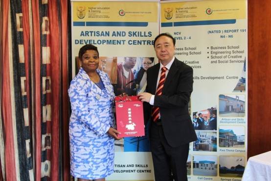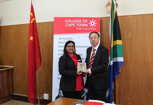 曹胜强访问了南非高等教育培训部试点院校艾古莱尼东职业技术学院,受到校长斯班蒂女士、副校长穆茨瓦巴博士及其他项目主管的热情接待。艾古莱尼东职业技术学院的专业设置与我校部分吻合,斯班蒂校长对我校的应用型人才培养模式和专业设置表现出浓厚的兴趣。曹胜强就共建专业、共享课程标准、互派教师、学生交换等合作与交流项目提出意见。双方同意在机械、电子、ICT三个领域进行深度合作,并指定了合作项目负责人,会谈内容形成了备忘录。