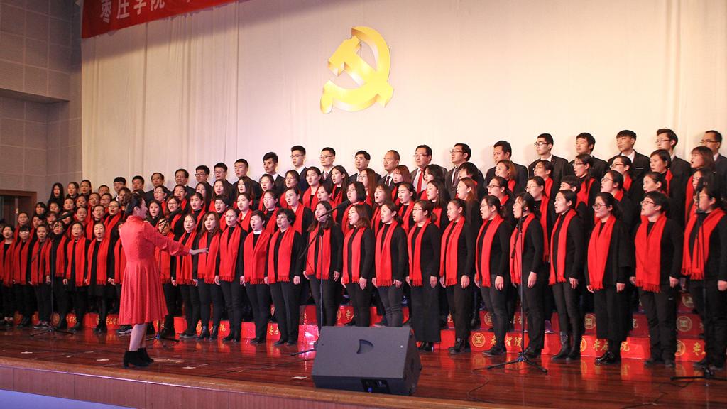 演唱会在旅游与资源环境学院《英雄赞歌》雄壮的歌声中拉开序幕。机电工程学院演唱的《美丽的草原我的家》和美术与艺术设计学院演唱的《打起手鼓唱起歌》等抒情老歌,悠扬深情的歌声唱出了师生们对祖国壮丽山河的热爱和祝福;心理与教育科学学院、政治与社会发展学院、马克思主义学院给观众带来了《今天是你的生日》《我和我的祖国》《听妈妈讲那过去的事情》等经典曲目,表达了大家内心深处对祖国的爱恋之情;外国语学院的《天路》和化学化工与材料科学学院的《一二三四歌》都是具有一定难度的合唱作品,在师生们的精湛演绎下完美诠释了各族人民对党的厚意深情;机关合唱团是人数最多的演唱队伍,他们带来气势恢宏的进行曲《走向复兴》,昂扬向上的曲调,振奋人心的歌词,传递了中华儿女渴求民族复兴、期盼国家富强的热切愿望,掀起了演唱会的第一个高潮。数学与统计学院演唱的《在太行山上》、信息科学与工程学院的《保卫黄河》、初等教育学院合唱团的《四渡赤水出奇兵》、后勤管理处与图书馆合唱团的《打靶归来》等经典曲目则将师生们的思绪带回战火纷飞的岁月,让我们更加珍惜来之不易的和平与繁荣。传媒学院、体育学院、光电工程学院合唱团为师生们演唱了《我的中国心》《明天会更好》《同一首歌》等曲目,耳熟能详的旋律让现场观众随之轻声吟唱,唱出了对祖国对党的祝福、对美好生活的向往。生命科学学院、文学院、经济与管理学院、城市与建筑工程学院合唱团的师生们通过多姿多彩的表现形式演唱了《长江之歌》《我们走在大路上》《团结就是力量》《十送红军》等经典曲目,唱出了祖国的大好河山和中国人民奋勇拼搏的精神。最后,由音乐与舞蹈学院师生演唱的《又唱微山湖》《红旗颂》《托起枣院辉煌的明天》,唱出了全院师生为了中华民族伟大复兴不懈奋斗的决心,将演出推向了高潮。
