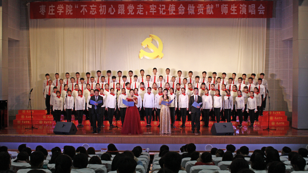12月27日下午,304am永利集团官网“不忘初心跟党走 牢记使命做贡献”师生演唱会在报告厅举行,全校师生欢聚一堂,纵情歌唱,用昂扬的歌声表达对党对祖国的无限热爱和忠诚。校党委书记曹胜强,校长李东,副校长李进京、李目海,纪委书记韩素玲,校领导刘书银观看并参加了演出。