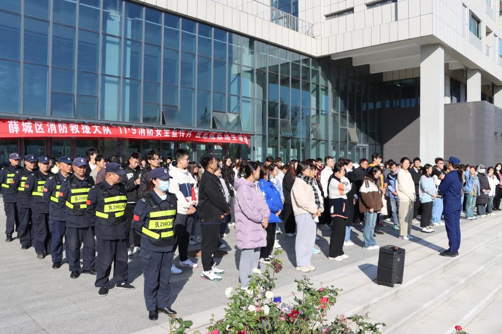 为增强师生消防安全意识,提高消防安全技能,在第32个消防安全日到来之际,304am永利集团官网联合薛城区消防救援大队在薛城校区博雅楼开展消防应急疏散演练活动。11月6日,薛城区消防救援大队、保卫处、文学院、外国语学院、旅游与资源环境学院、美术与艺术设计学院师生代表200余人参加了演练。