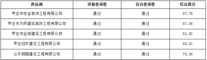 1.枣庄市为民建筑装饰工程有限公司:因技术部分得分较低